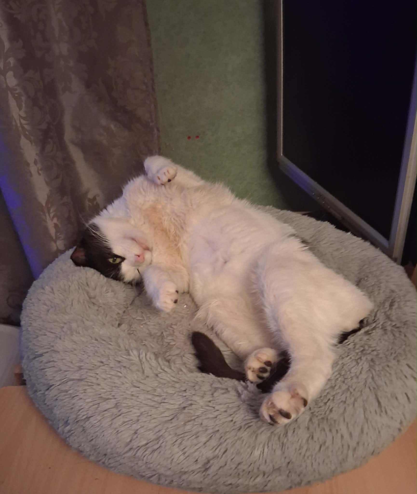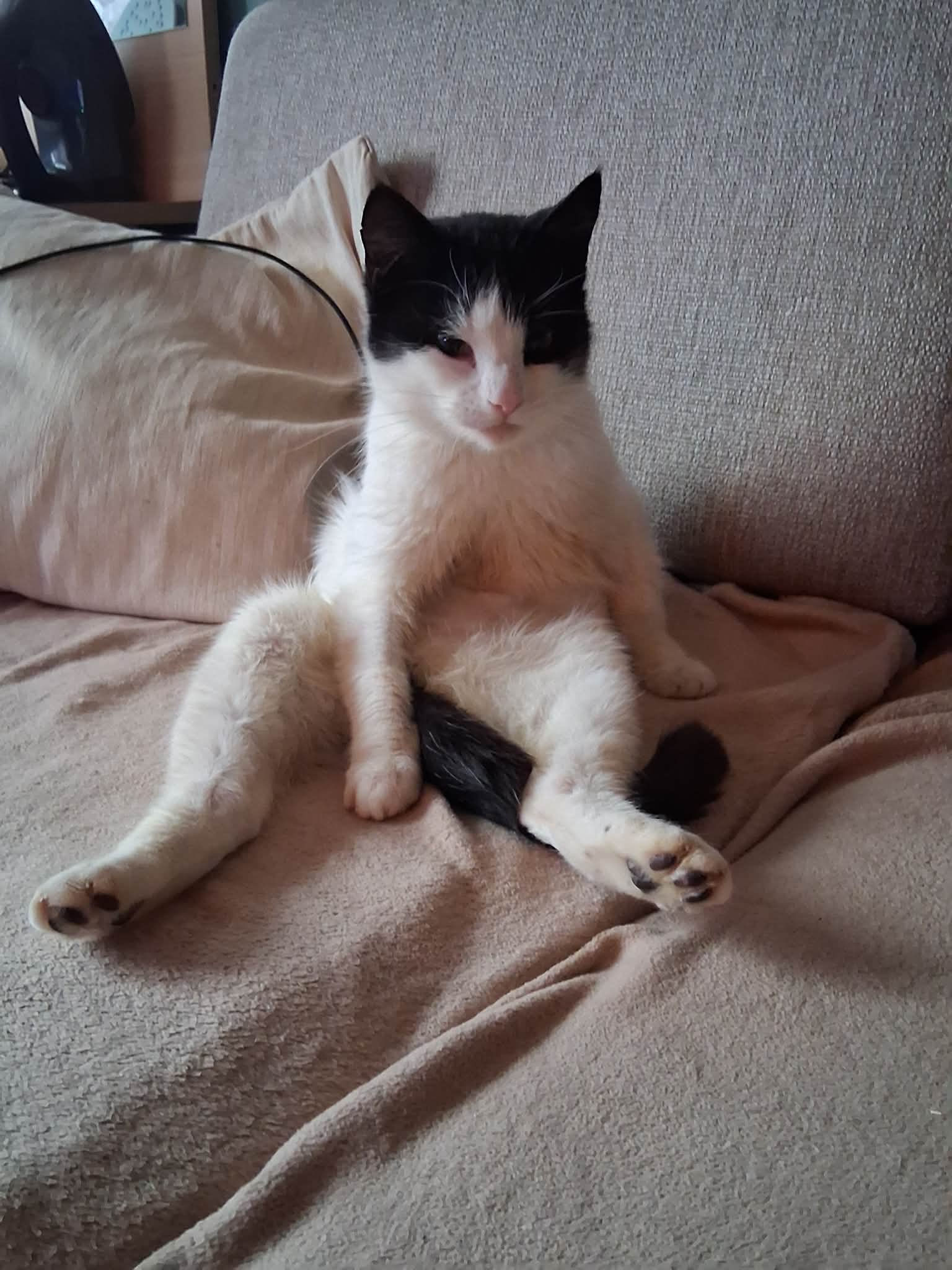 Musti on sõbralik ja paimaias kiisu, kes otsib endale kodu, kus saaks teiste kasside seltsi nautida. Kui Musti meile tuli, siis tekitas ta meile korraliku ehmatuse: vaid paar päeva pärast Kassikaitse hoole alla saabumist muutus ta loiuks ja isutuks ning kiirustasime temaga erakorraliselt kliinikusse, kus tal tuvastati kõhuõõnes korralik kogus vabavedelikku. Meie mõtted läksid juba kõige hullemale, muretsesime kasvajate, maksakahjustuse ja soolepõletike pärast… Ent pärast põhjalikumaid uuringuid selgus hea uudis, et Musti mured on tõenäoliselt vaid seotud kroonilise kehva toitumusega tänaval ning kõik peaks lahenema kvaliteetse toidu ja probiootikumiga. Küll meil oli seda hea meel kuulda! 🙂