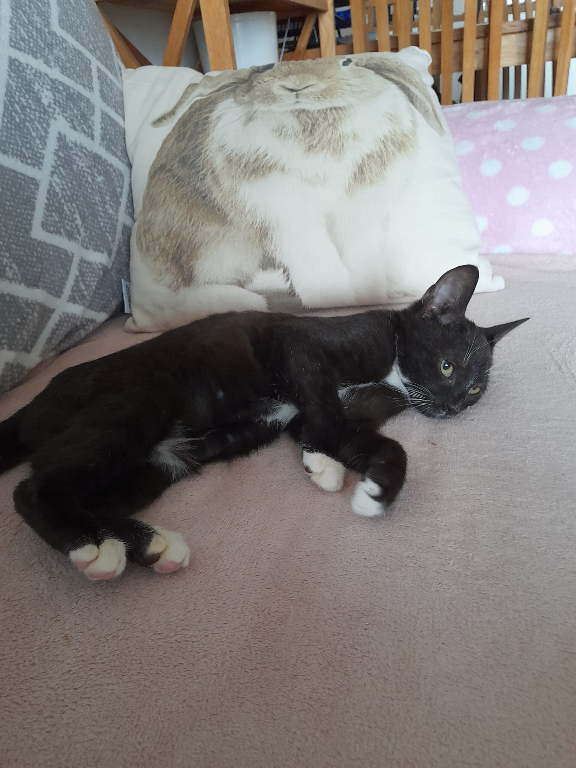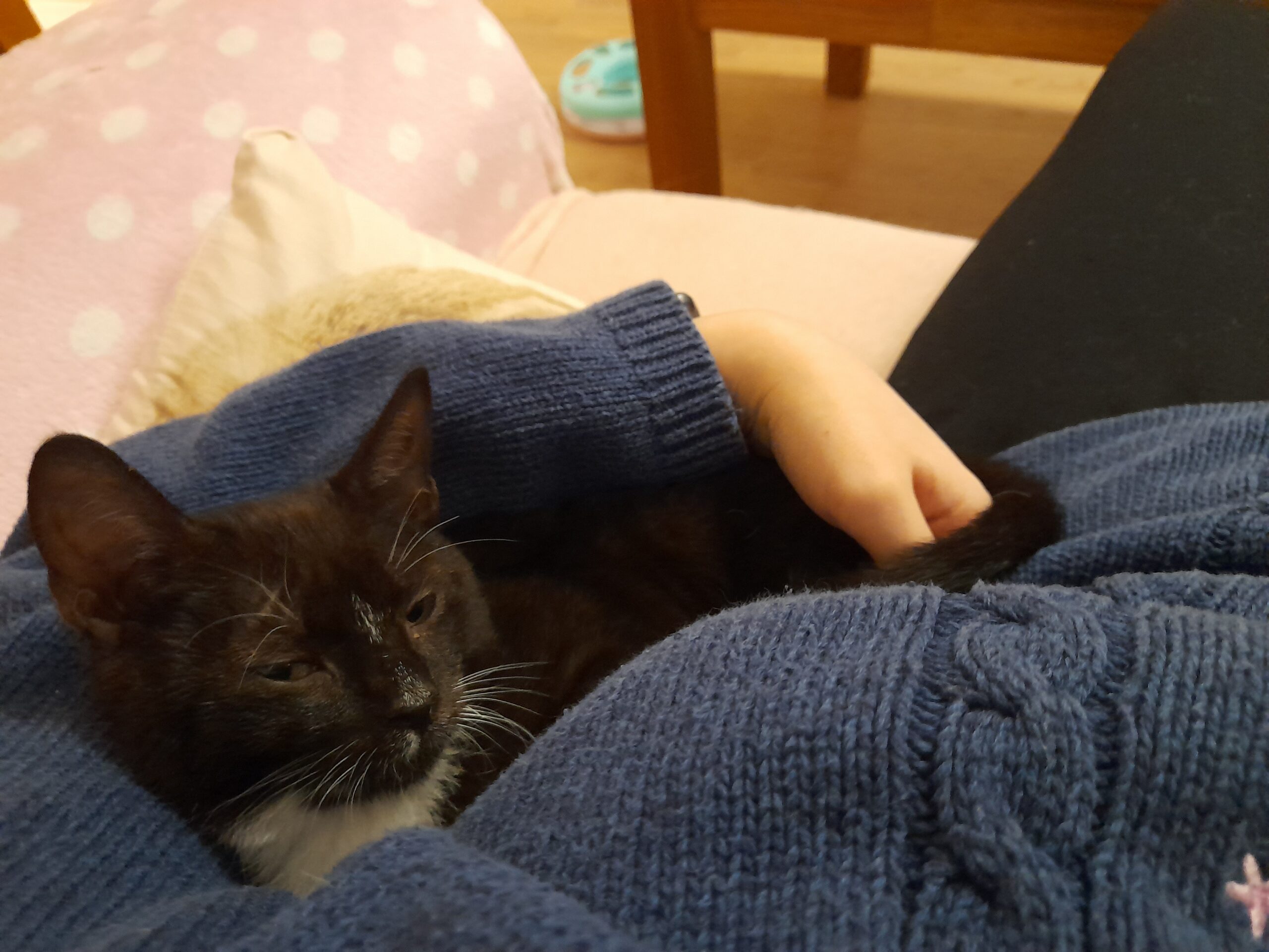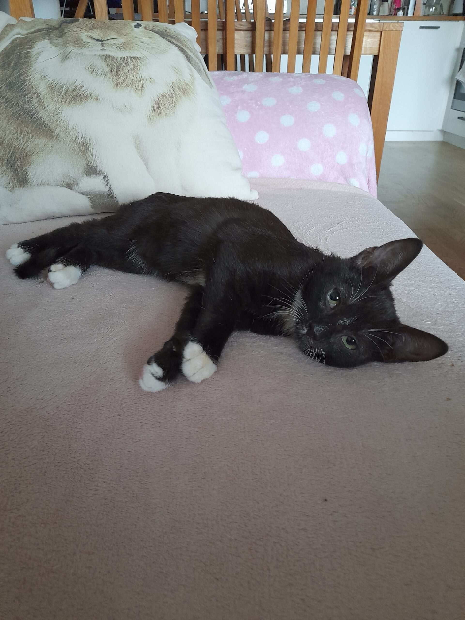 Triibupasta on häbelikum kui tema vennad, aga kui õnnestub ta usaldus võita, siis on tegelikult sõbralik kiisu ja naudib väga paitamist. Kui ta ennast turvaliselt tunneb, tuleb meelsasti sülle, ja kui juba süles on, läheb tööle korralik nurrumootor. Tundub pesakonnast kõige rahulikuma iseloomuga.